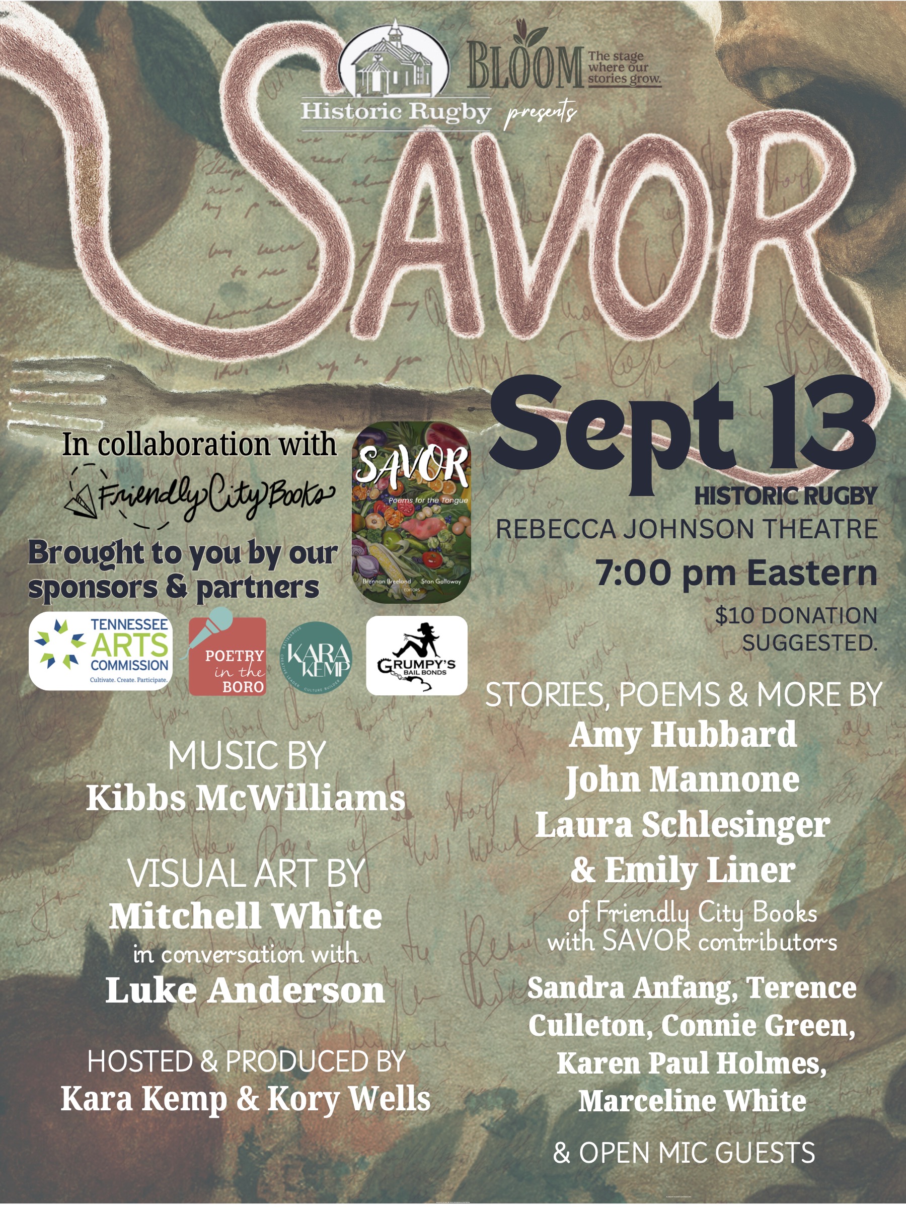 The event is free, thanks to support from the Tennessee Arts Commission. A suggested $10 donation at the door supports Historic Rugby’s preservation and arts programming. No one will be turned away for lack of funds. Following the show, guests are invited to enjoy light refreshments and conversation in the theatre lobby. Anthologies and art by Henry Jones will be for sale.